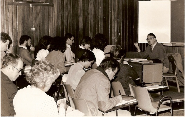 [photo_footer] Pablo Wickham, teaching theology at the CEFB Duque, in 1986. [/photo_footer]